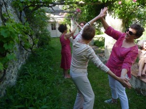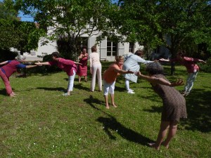 Les gestuelles proposées sont simples et effectuées dans la lenteur, sollicitant le corps dans sa globalité et son potentiel d’expression.
