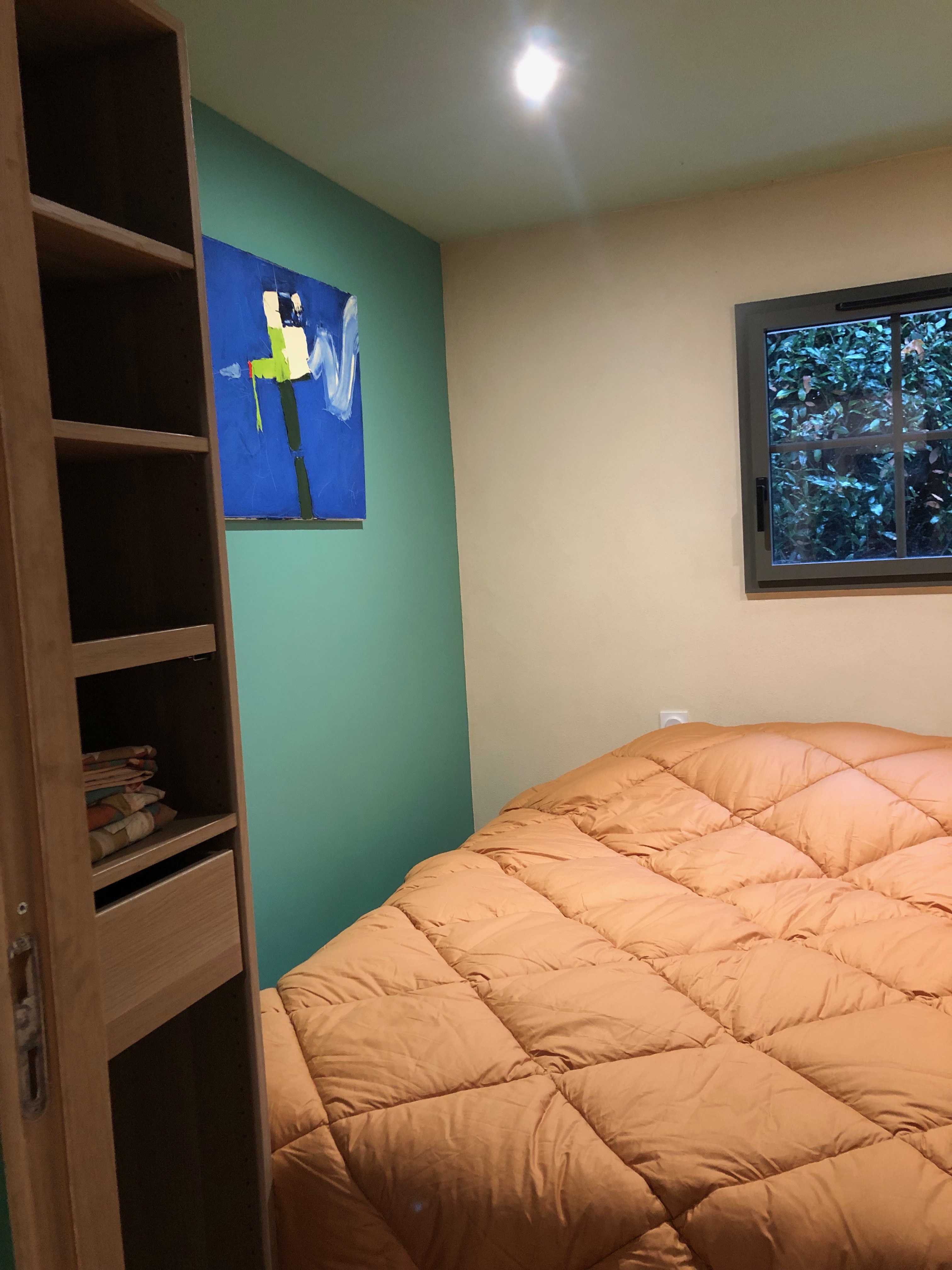 – une petite chambre de 7 m2 avec 2 lits de 80×200 qui peuvent être réunis pour un faire un lit double de 160.