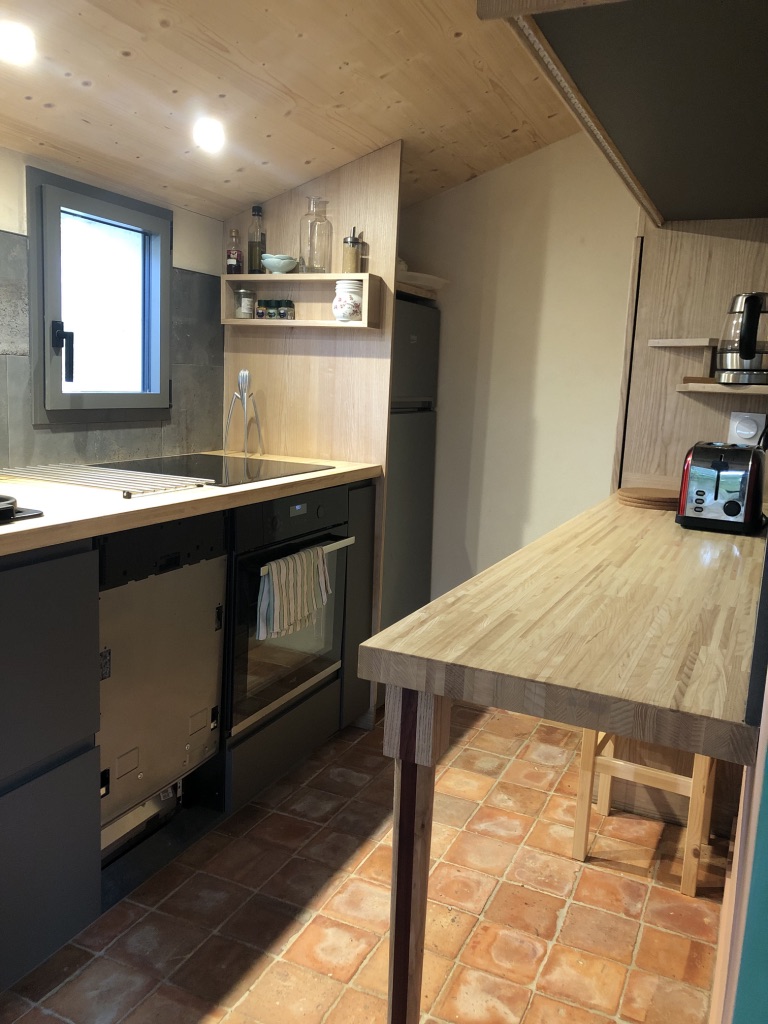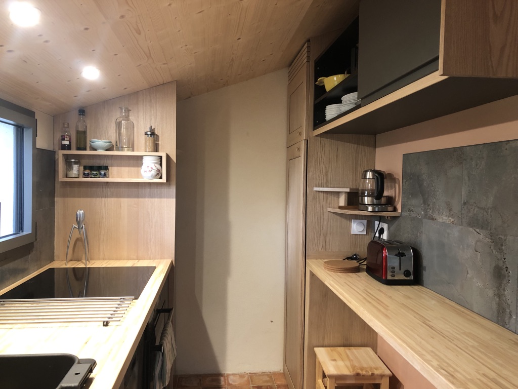 – une cuisine bien équipée avec frigo, plaque de cuisson à induction, four, lave-vaisselle, grille-pain et bouilloire et tout le nécessaire pour cuisiner